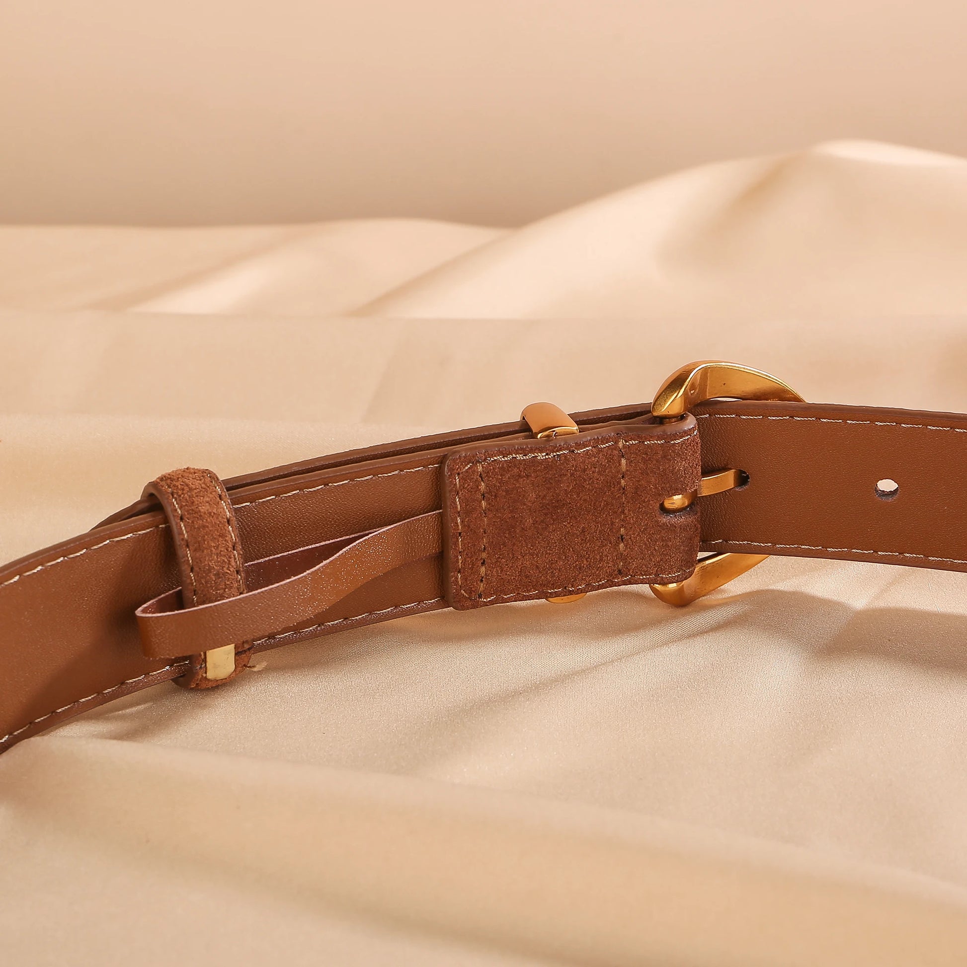 Luxurious leather belt for women, vintage style 2.8 width suitable for jeans and skirts