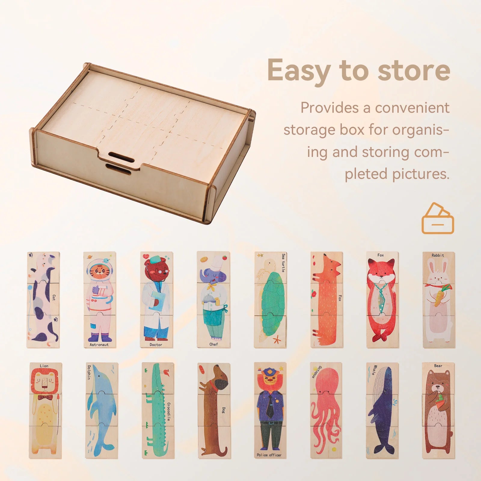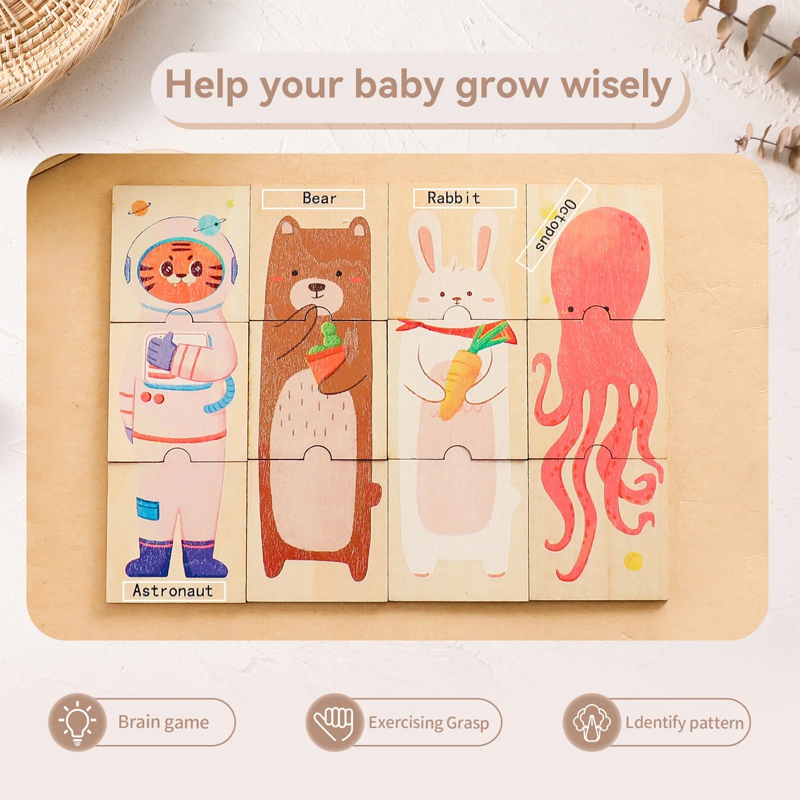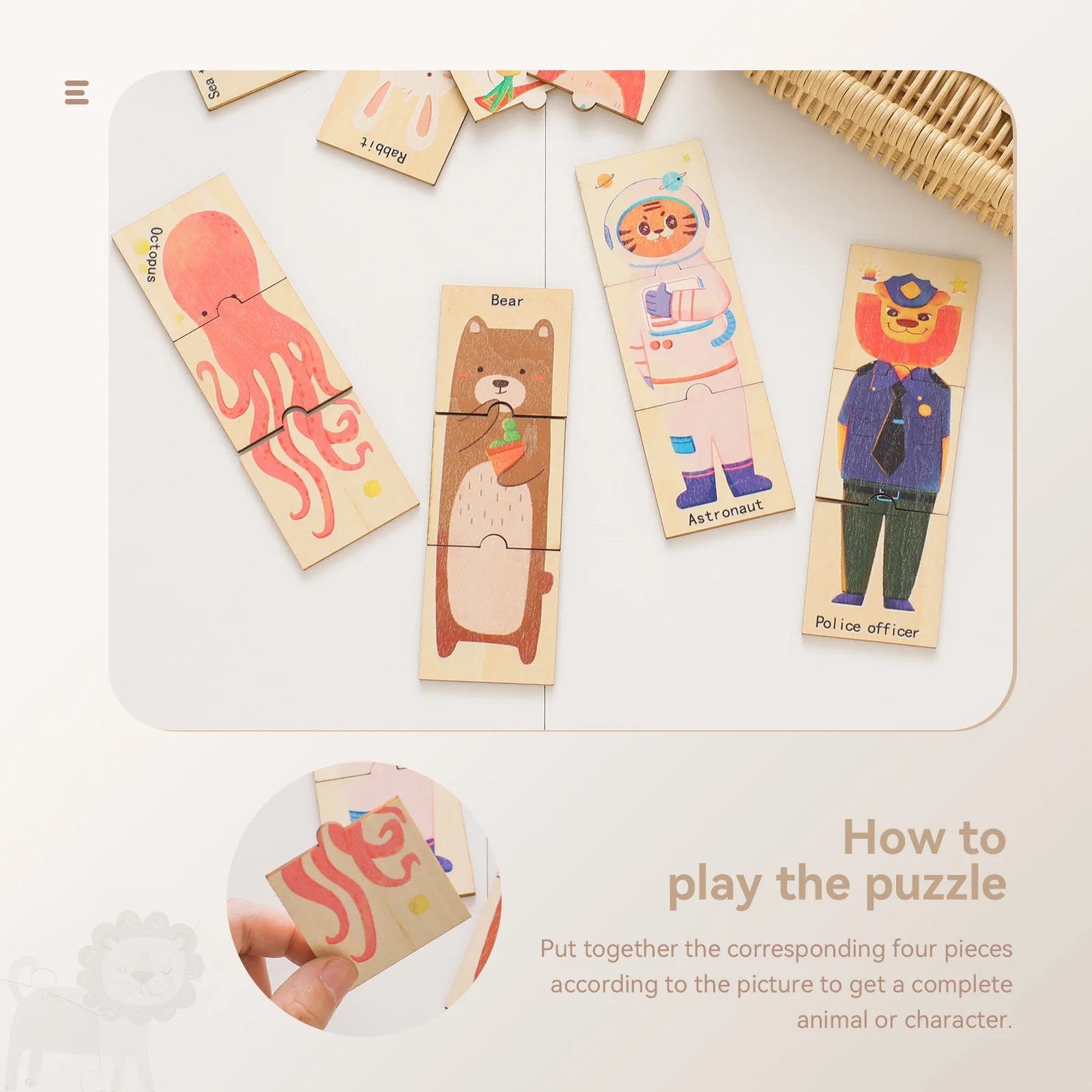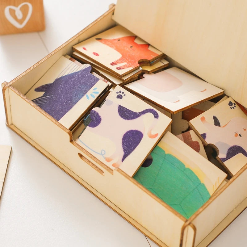 Wooden Puzzle 48PC Board Games Cartoon Animal Wooden Creative Puzzle Montessori Education Wooden Toys 3D Puzzles Learning Toys